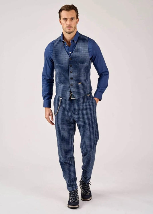 Einreihige Weste mit Vichymuster und V-Ausschnitt LUSEBASTIAN