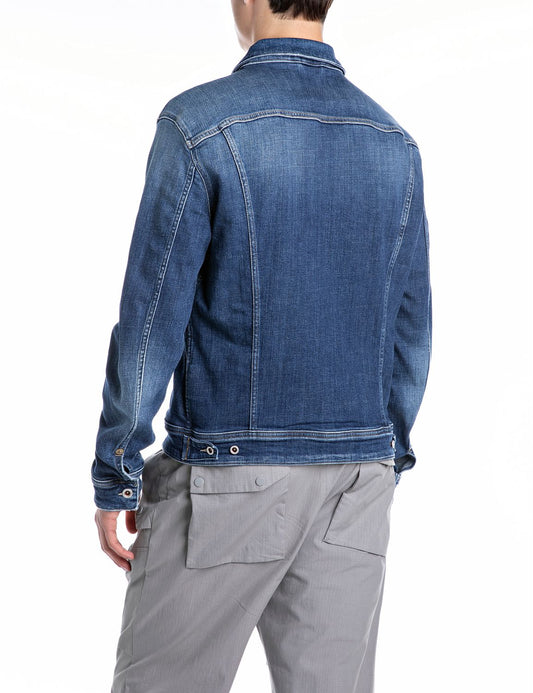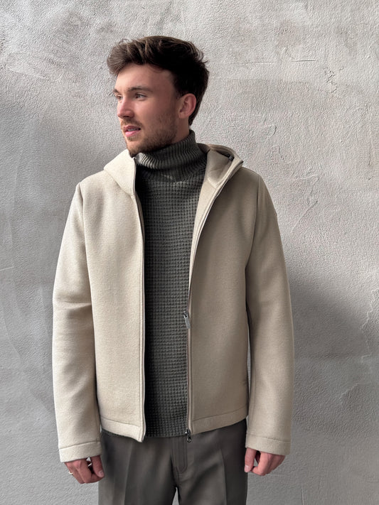 Graue Hybridjacke mit Strickdetails aus Wollmelange