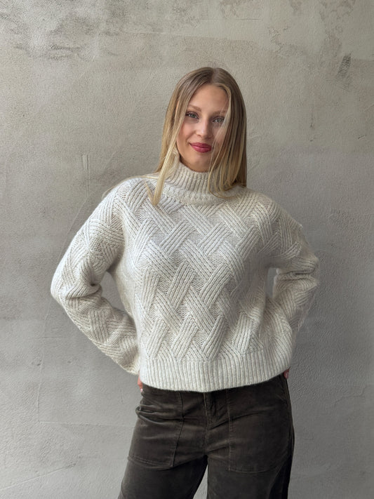 Pullover aus edlem Kaschmir-Baumwollmix in Flechtoptik