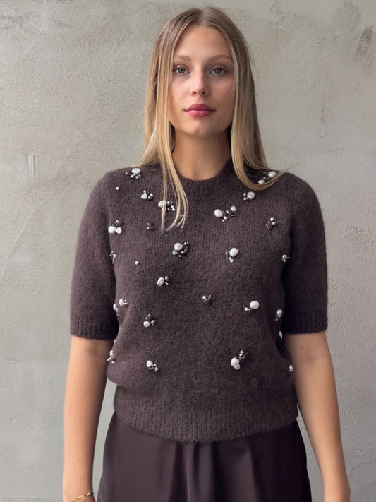 Handbestickter Pullover aus softem Alpaka-Garn. LOVING TOUCH