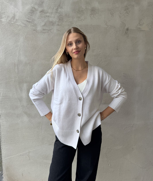 Oversize Cardigan in Creme mit Cashmere-Anteil