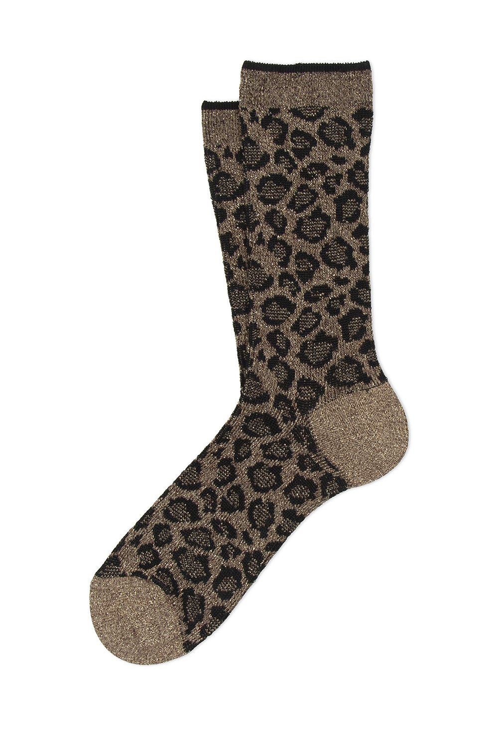Lurex Socken - Fein gerippte Socken mit Leomuster und Samtspitze Made in Italy