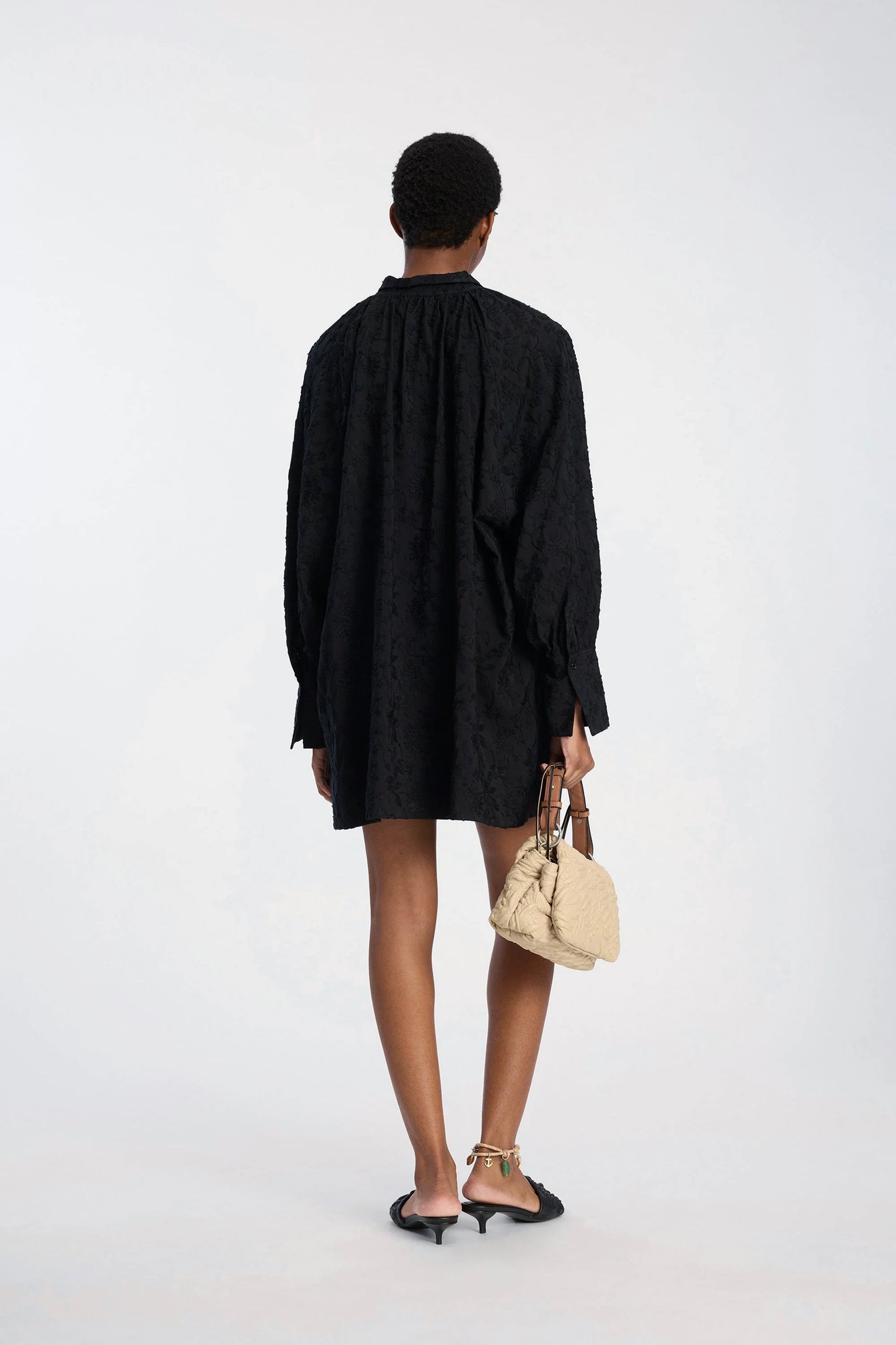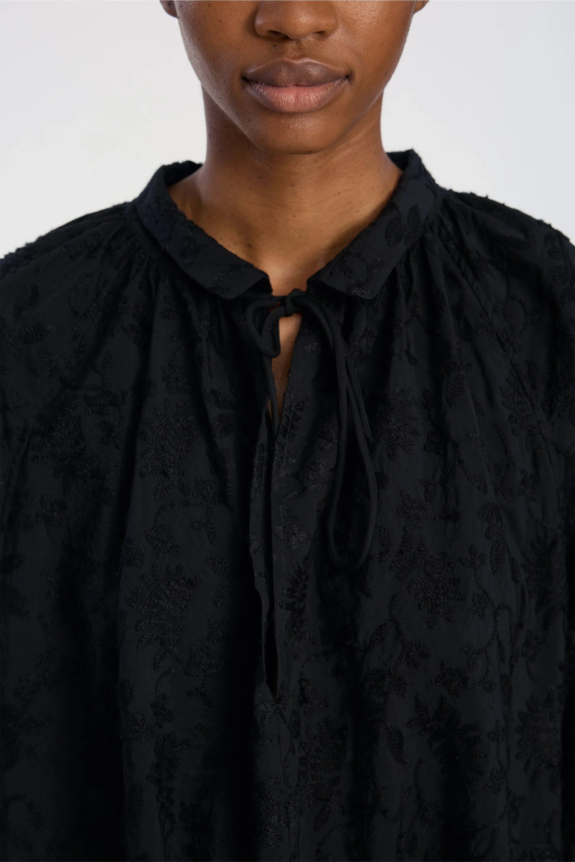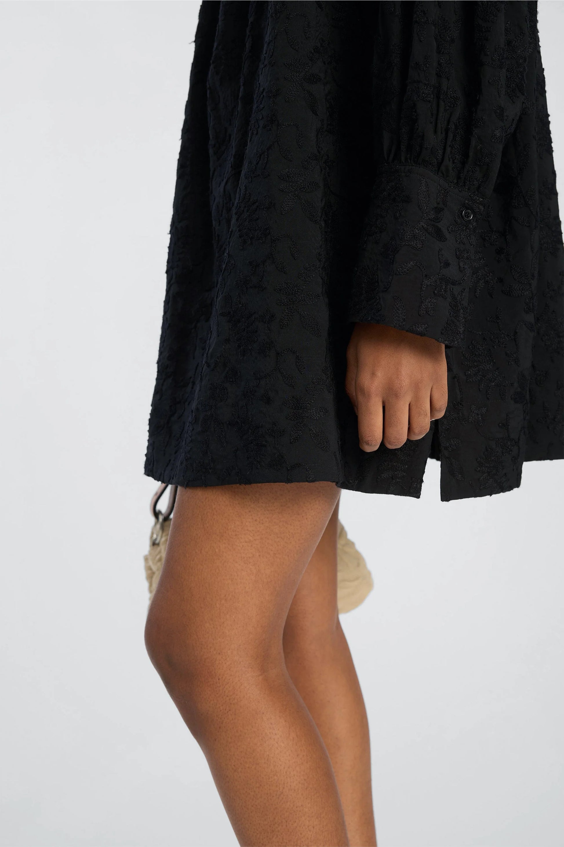 Betulli Dress - Jacquard-Kleid in Schwarz mit Bindetail und voluminösen Ärmeln
