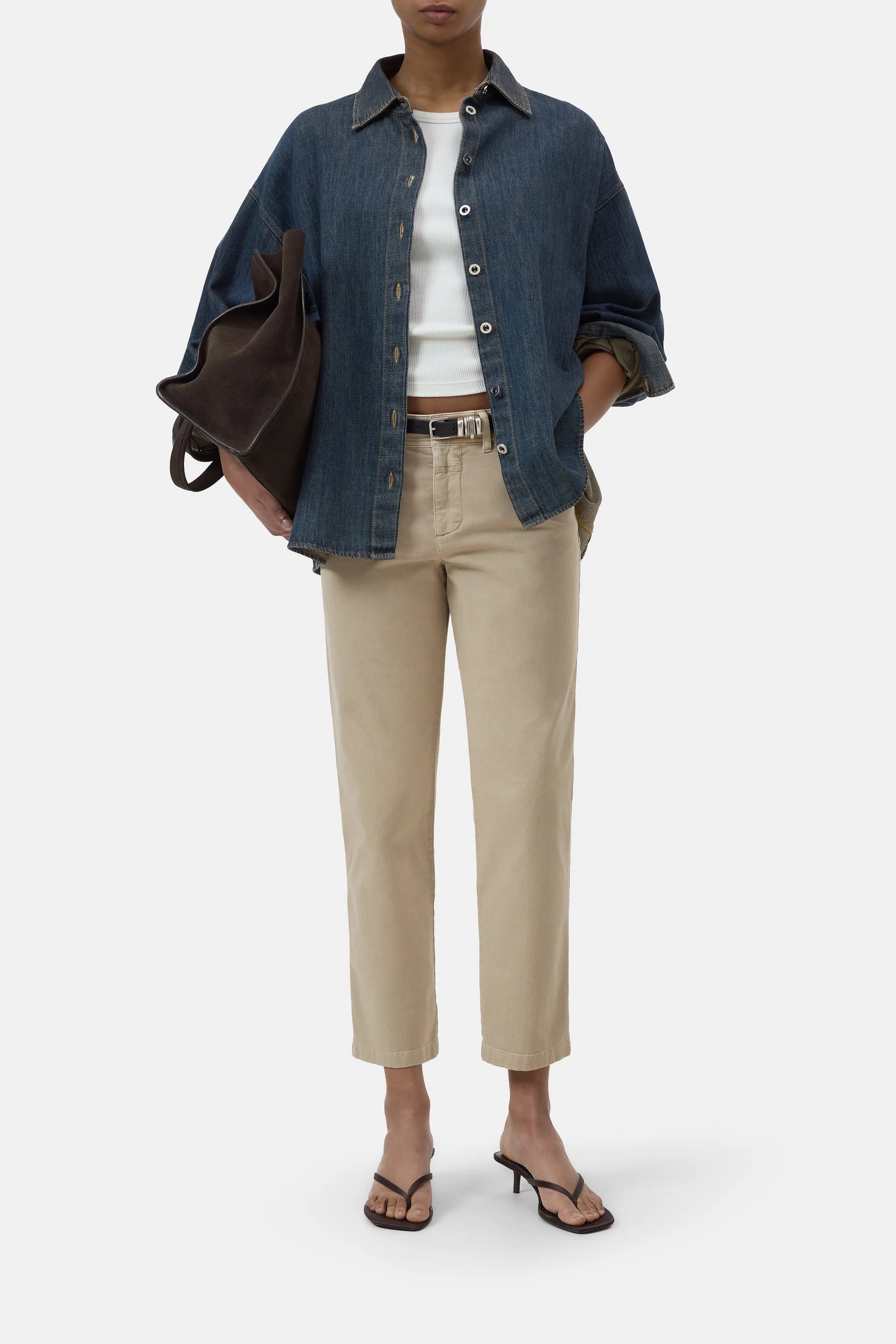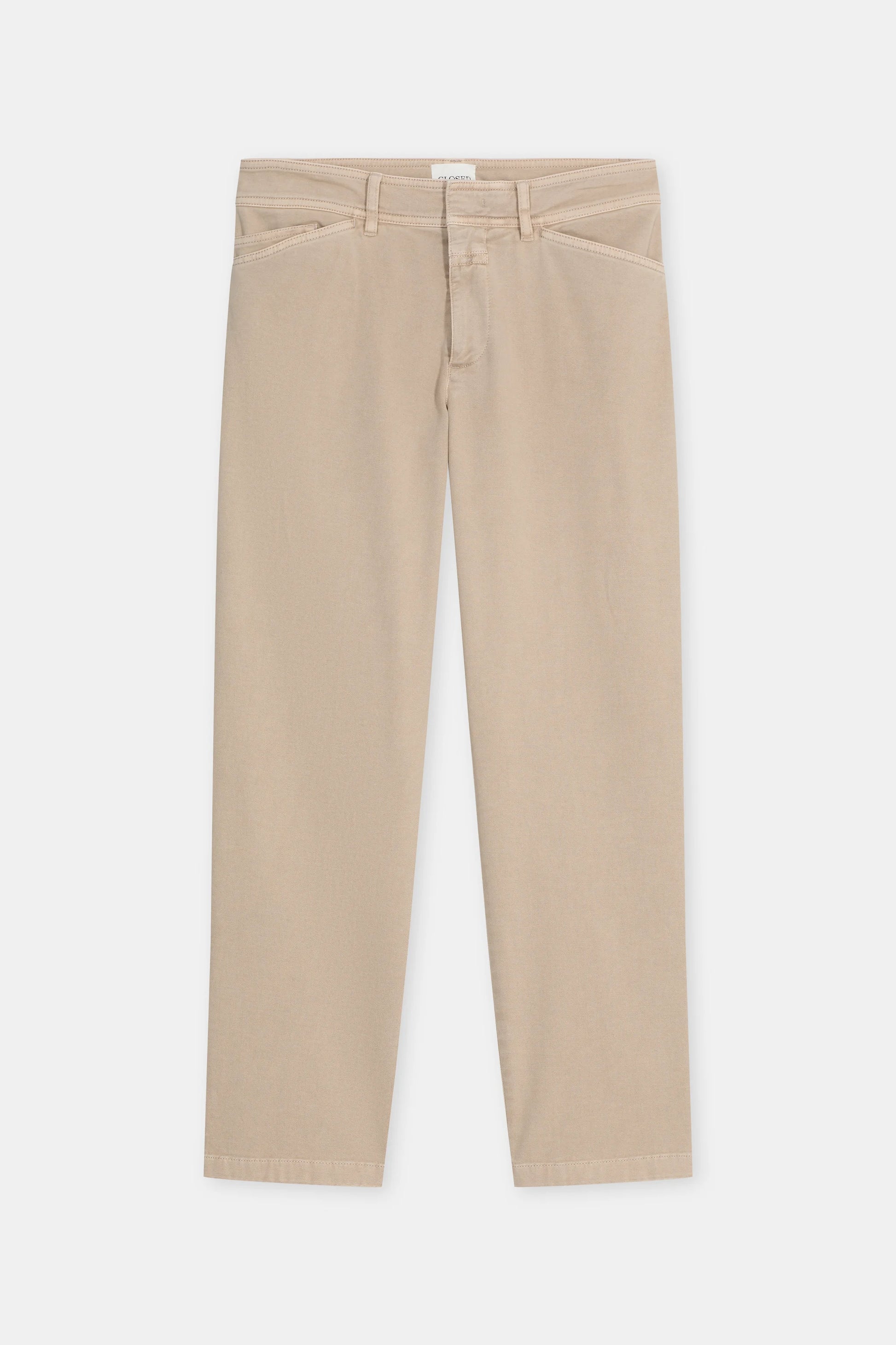 CLOSED Sylva Hose - Slim Pants in Clay Beige aus Bio-Baumwoll-Twill mit X-Pocket-Design Made in Romania