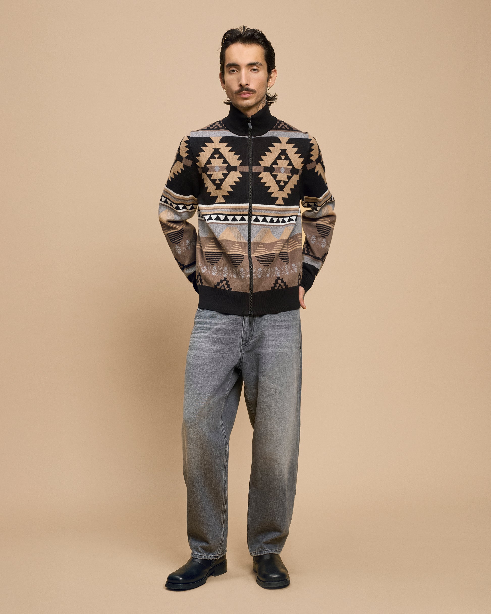 ANTONIO Strickjacke - Klassische Jacke im Baumwoll-Mix mit Ethno-Jacquard und 2-Way Zip