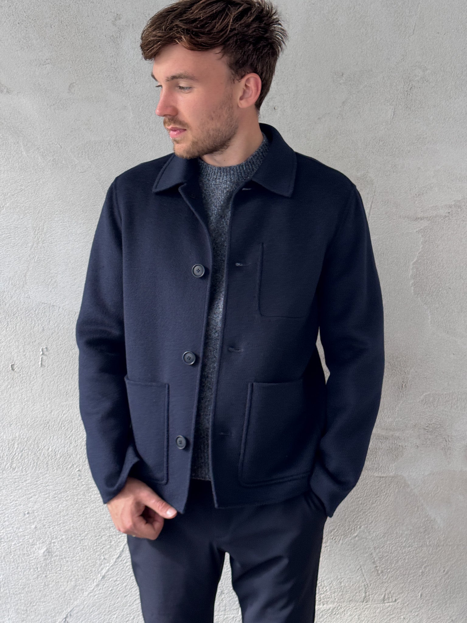 MAKONA ist eine modern interpretierte Indoor-Jacke mit klassischem Umlegekragen und markanter Knopfleiste. Drei aufgesetzte Taschen verleihen dem Design eine funktionale Note und unterstreichen die klare Silhouette. Der luxuriöse Doubleface ist aus hochwertiger Wolle gefertigt und bietet ein warmes und angenehmes Tragegefühl.