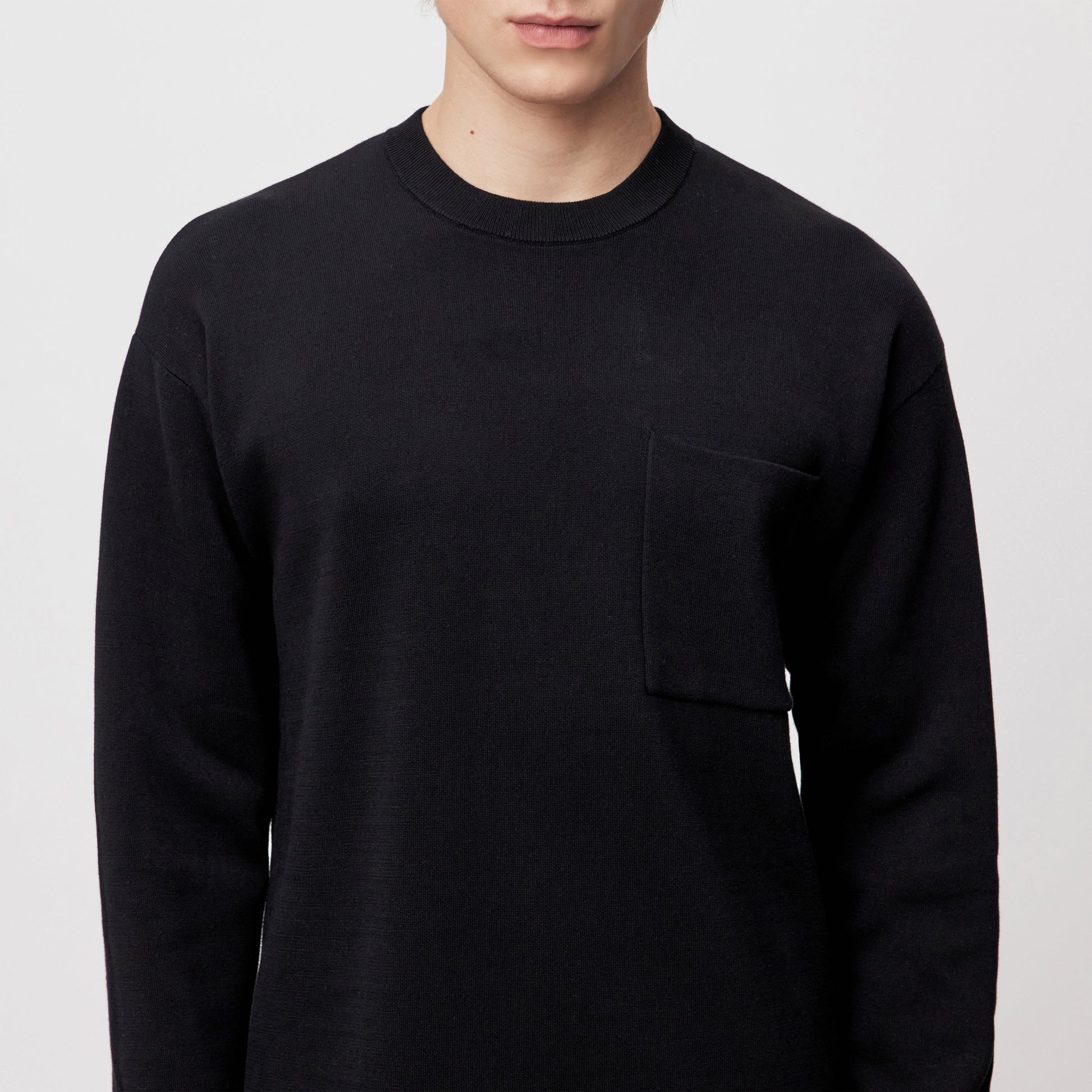 LEVVIN Longsleeve - Minimalistischer Strickpullover im Baumwoll-Mix mit Brusttasche