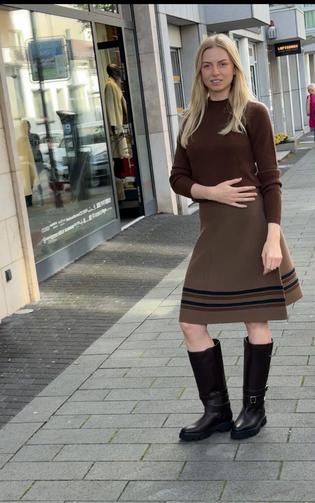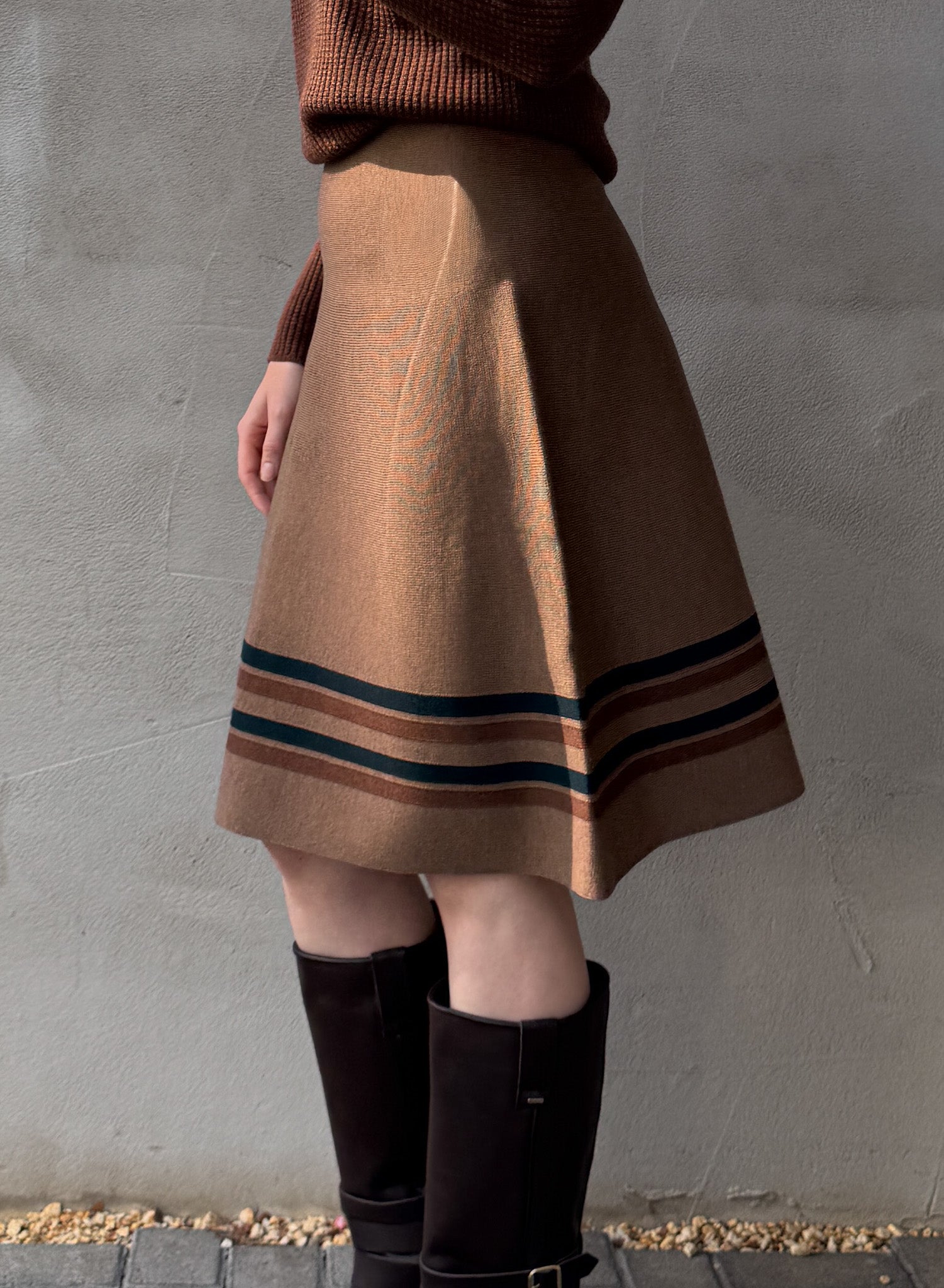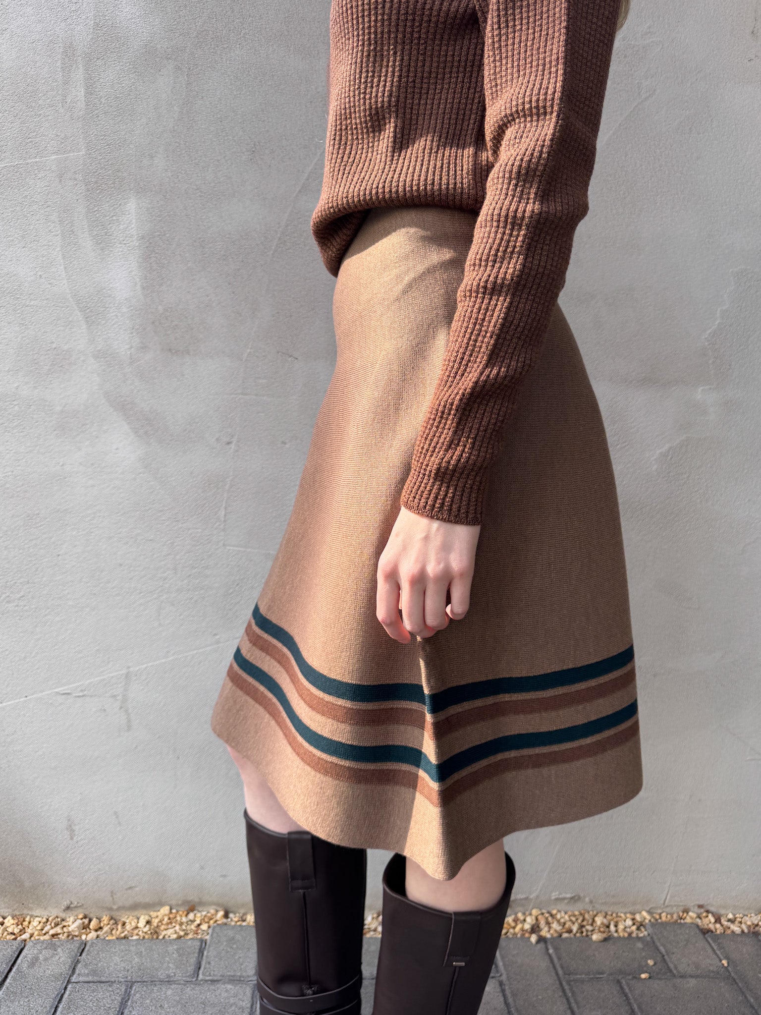 Aus 100 % Merinowolle gefertigt, überzeugt dieser Mini Strickrock mit glatter, dichter Strickqualität und einem ausgestellten Schnitt in Tulpenform – feminin und zeitlos.