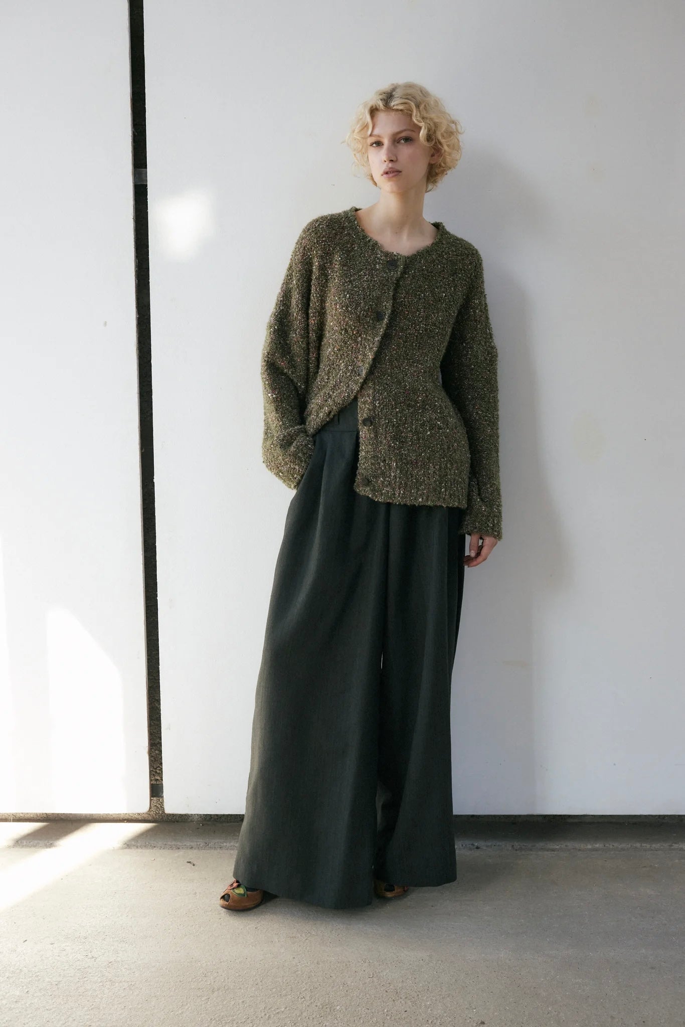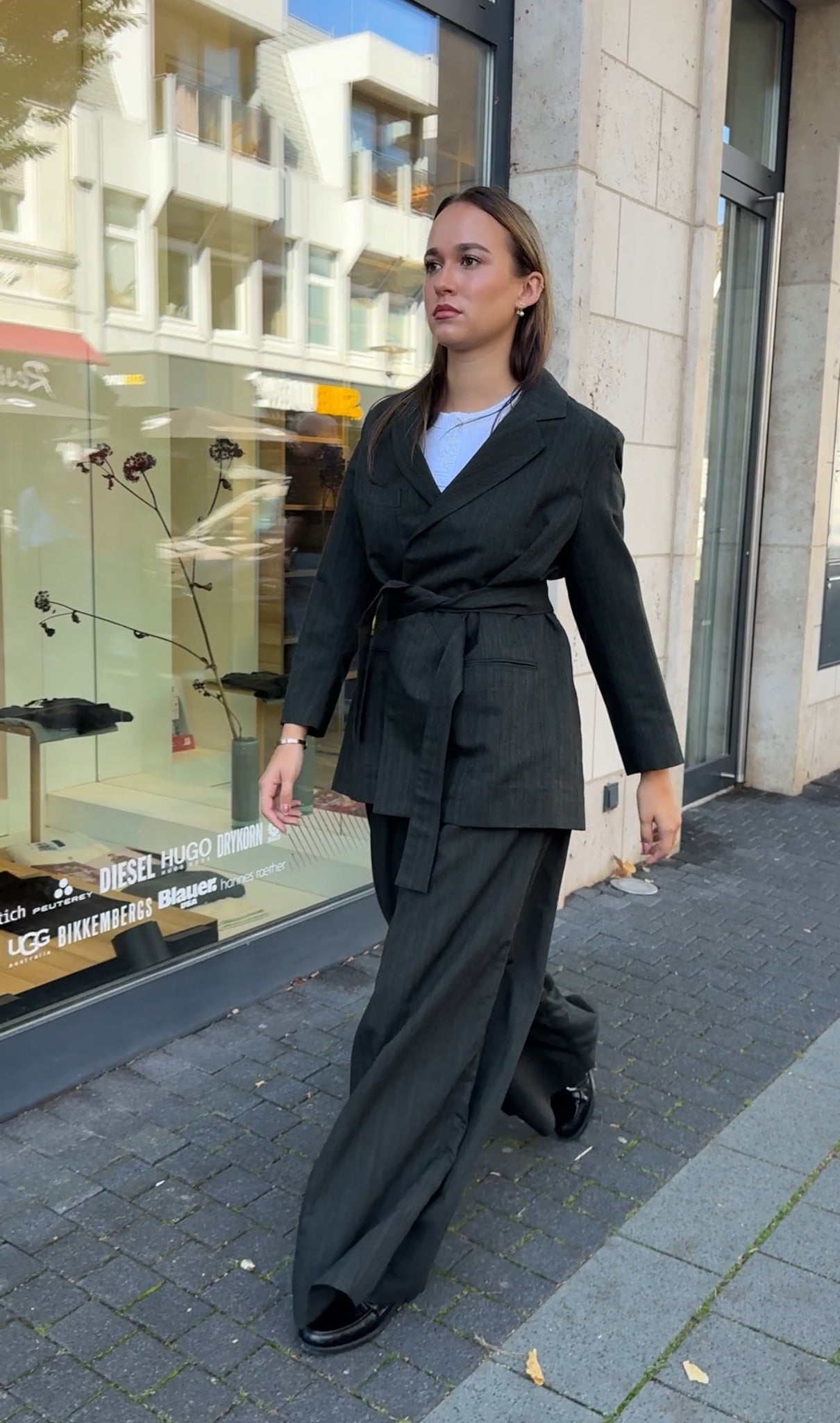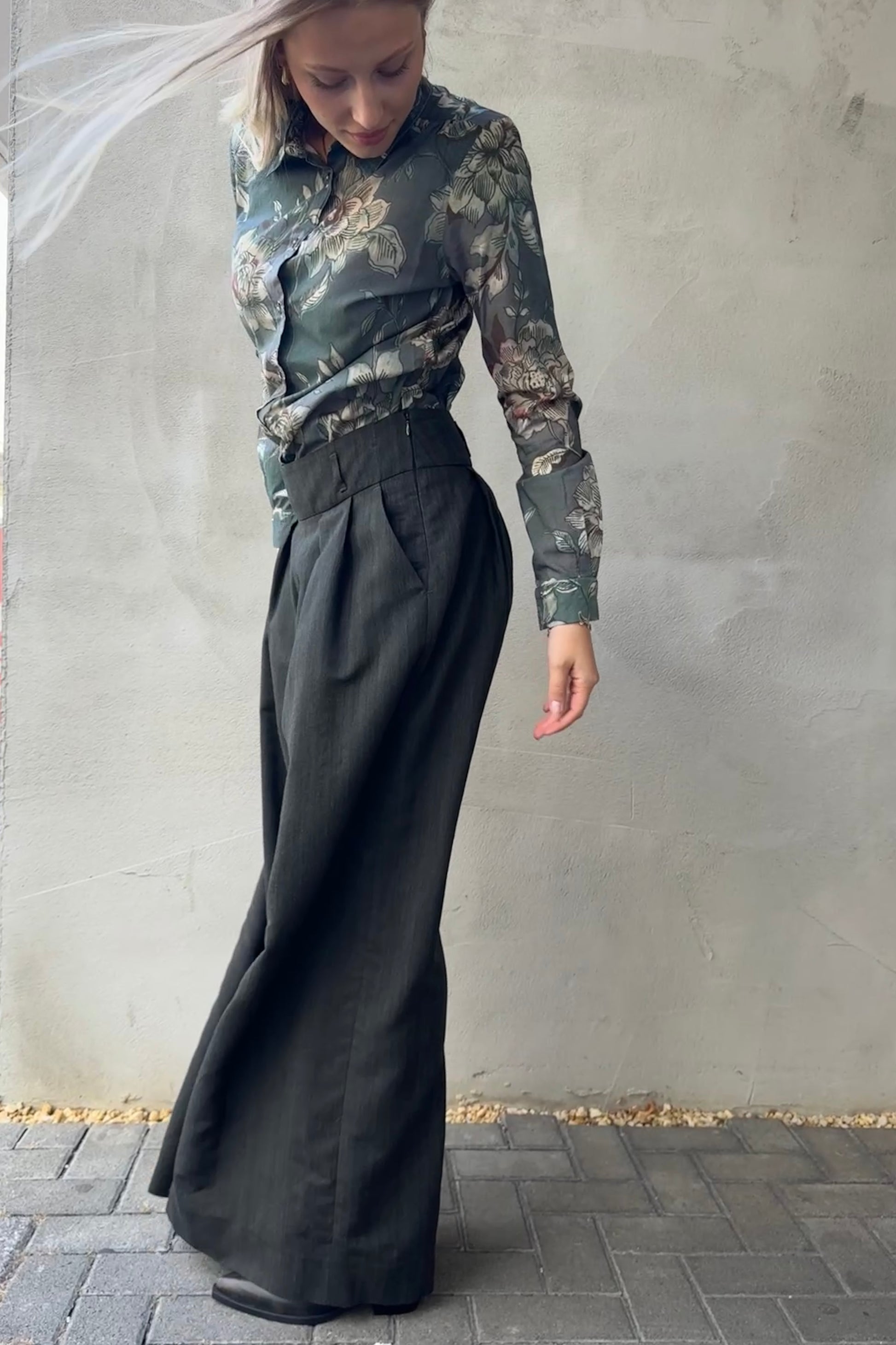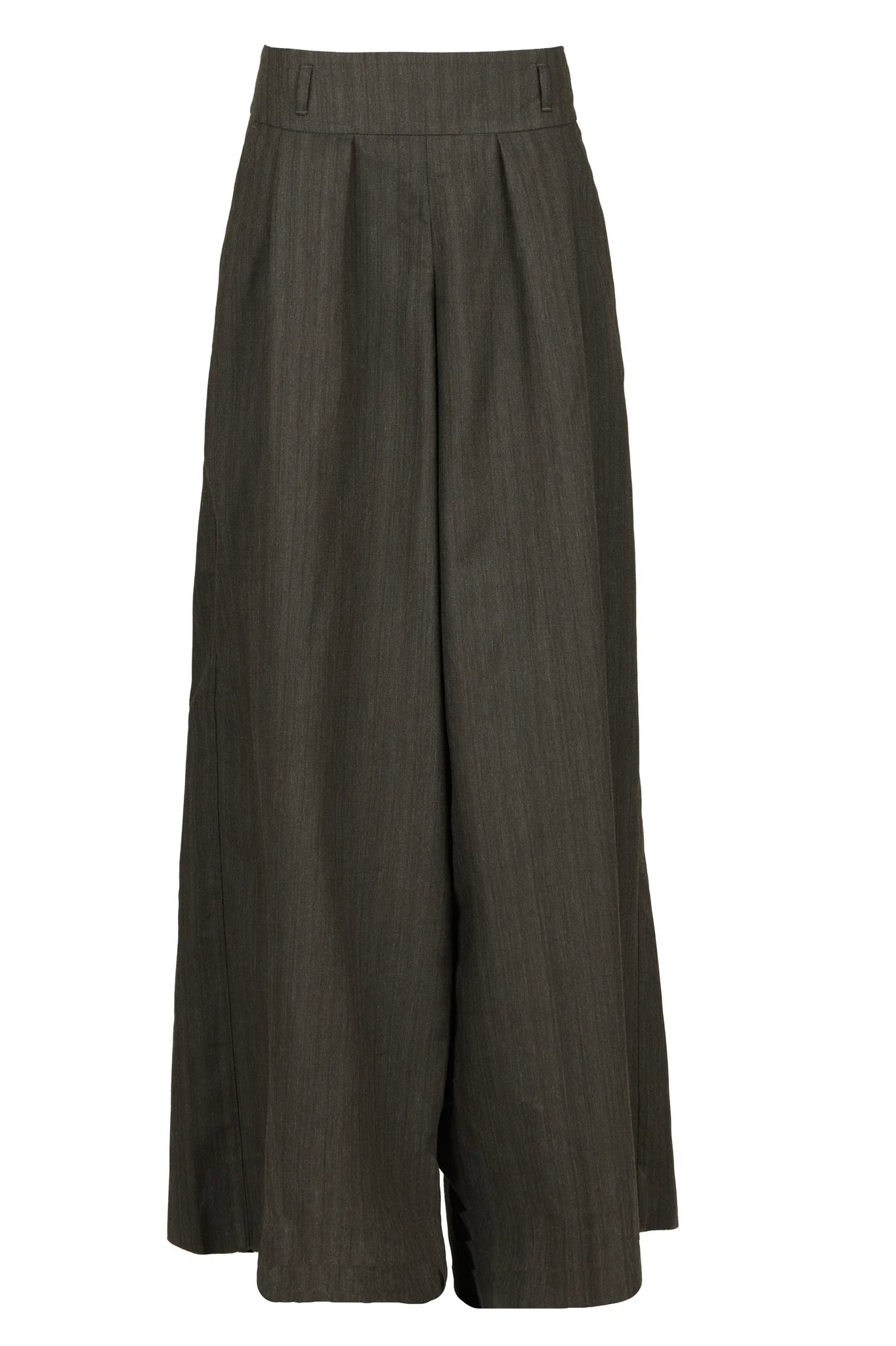 Diese Hose aus einer hochwertigen Viskose-Woll-Mischung überzeugt durch ihre matte, glatte Oberfläche und die elegante, weite Passform. Der breite Bund mit seitlich verdecktem Reißverschluss sorgt für eine klare Silhouette, während eingelegte Falten am Bund dem Modell eine moderne Note verleihen. Ein vielseitiges Key-Piece für Business- und Casual-Looks.